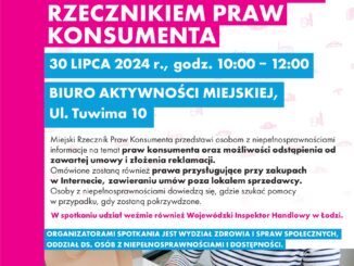 30 lipca 2024 r. w godz. 10:00 – 12:00 w Biurze Aktywności Miejskiej (ul. Tuwima 10, Łódź) Miejski Rzecznik Praw Konsumenta przedstawi osobom z niepełnosprawnościami […]