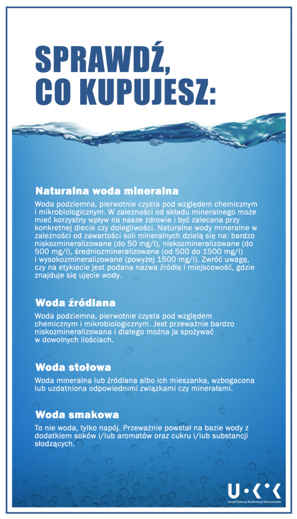 – Konsumenci często nie zdają sobie sprawy, że tak zwane wody smakowe to napoje, w których jest cukier lub substancje słodzące, a także sztuczne aromaty. Wybierając wodę mineralną czy źródlaną, zawsze dokładnie czytajmy etykiety – radzi Marek Niechciał, prezes Urzędu Ochrony Konkurencji i Konsumentów. Dodaje, że UOKiK będzie stale monitorował ten rynek.
